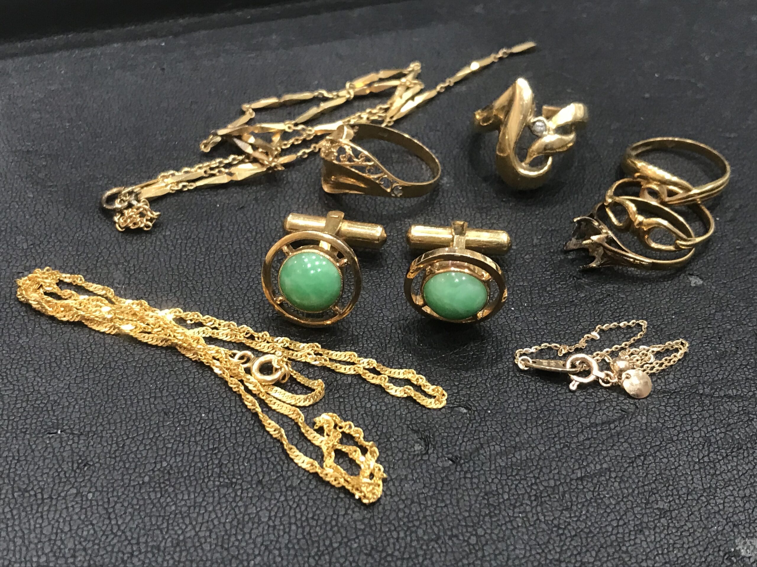 お持ち込みいただいたのは、札幌市内にお住まいのお客様で、「使わなくなった貴金属を整理したい」とのご相談でした。アクセサリーはネックレスや指輪など数点あり、いずれも金製品のお品物でした。デザイン自体は少し前のものではありましたが、金製品の場合はデザイン以上に素材そのものの価値が大きなポイントとなります。そのため、「古いから価値がないのでは」「切れてしまっているから売れないのでは」と心配されている方も多いのですが、実際には状態に関わらずしっかりとお値段が付くケースがほとんどです。